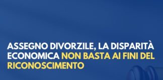 Assegno divorzile, la disparità economica non basta ai fini del riconoscimento