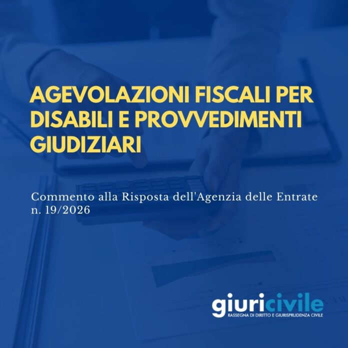Agevolazioni fiscali per disabili e provvedimenti giudiziari – Commento alla Risposta dell’AdE n. 19/2026