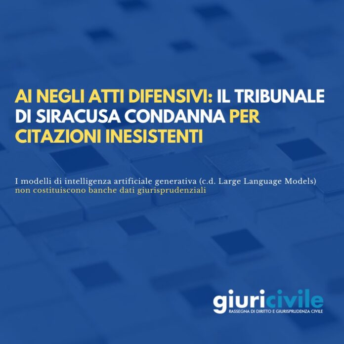 L’uso improprio e acritico dell’AI negli atti difensivi continua a “costare caro”: a quasi un anno dalla prima decisione del Tribunale di Firenze in materia, questa volta è il Tribunale di Siracusa a riaccendere il dibattito sul tema.
