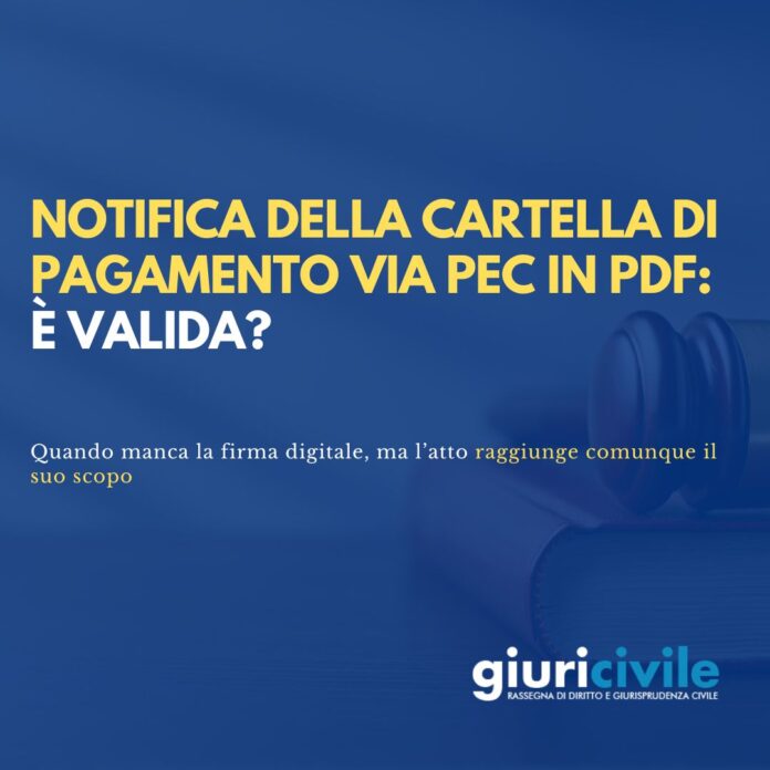 Secondo la Suprema Corte, la notifica della cartella via PEC in formato “.pdf” è valida, perché la PEC garantisce già di per sé la provenienza del documento.