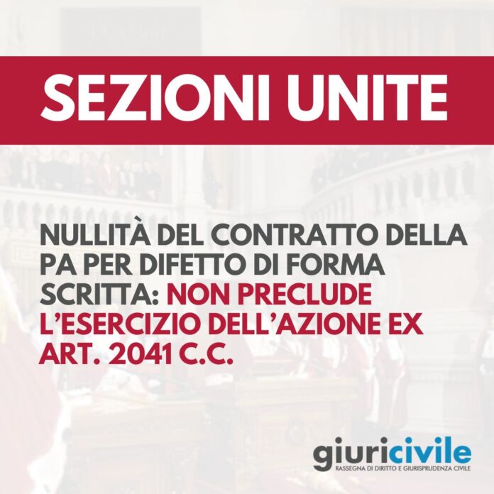 Contratti PA nulli per difetto di forma scritta: le Sezioni Unite ammettono l’azione ex art. 2041 c.c.
