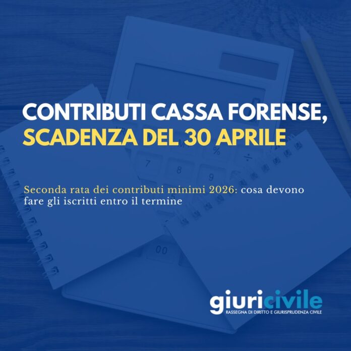 Dopo la prima scadenza del 28 febbraio, si avvicina il secondo appuntamento con i contributi minimi Cassa Forense 2026: il termine del 30 aprile 2026 riguarda la seconda rata del contributo minimo soggettivo e integrativo. Per una panoramica completa su importi, modalità di pagamento e disciplina applicabile si rinvia all’approfondimento già pubblicato su contributi minimi Cassa Forense 2026, avvisi e scadenze.
