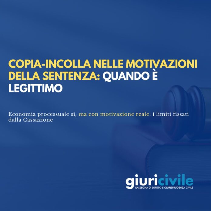 La Cassazione, in conclusione, non demonizza la tecnica del copia-incolla: la riconosce come strumento al quale il giudice può far ricorso per ragioni di economia processuale, purché garantisca comunque il controllo della motivazione.