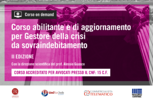 Il Corso abilitante e di aggiornamento per Gestore della crisi da sovraindebitamento si inserisce nel quadro della crescente specializzazione richiesta dal Codice della crisi d’impresa e dell’insolvenza, offrendo un percorso completo, strutturato e conforme ai requisiti normativi per l’accesso e il mantenimento dell’iscrizione all’albo dei gestori (CLICCA QUI PER ISCRIVERTI).