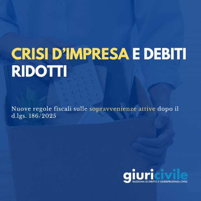 Il d.lgs. 4 dicembre 2025, n. 186 segna un passaggio decisivo nel processo di armonizzazione tra diritto tributario e diritto della crisi d’impresa. La disciplina delle sopravvenienze attive viene ricondotta a coerenza con le finalità del CCII, restituendo effettività agli strumenti di regolazione della crisi e confermando la centralità di una valutazione integrata, giuridica e fiscale, nella gestione delle situazioni di difficoltà dell’impresa.