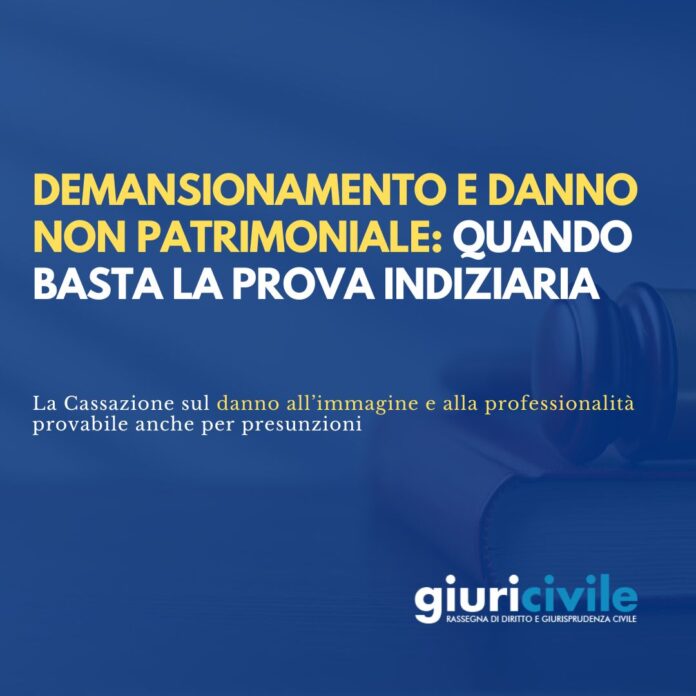 Il pregiudizio all’immagine e alla professionalità (non patrimoniale) non richiede una prova diretta, bensì una prova che si adatti alla natura del danno stesso, spesso derivante da condotte subdole e omissive. La prova indiziaria è, dunque, lo strumento processuale che garantisce la piena effettività della tutela.