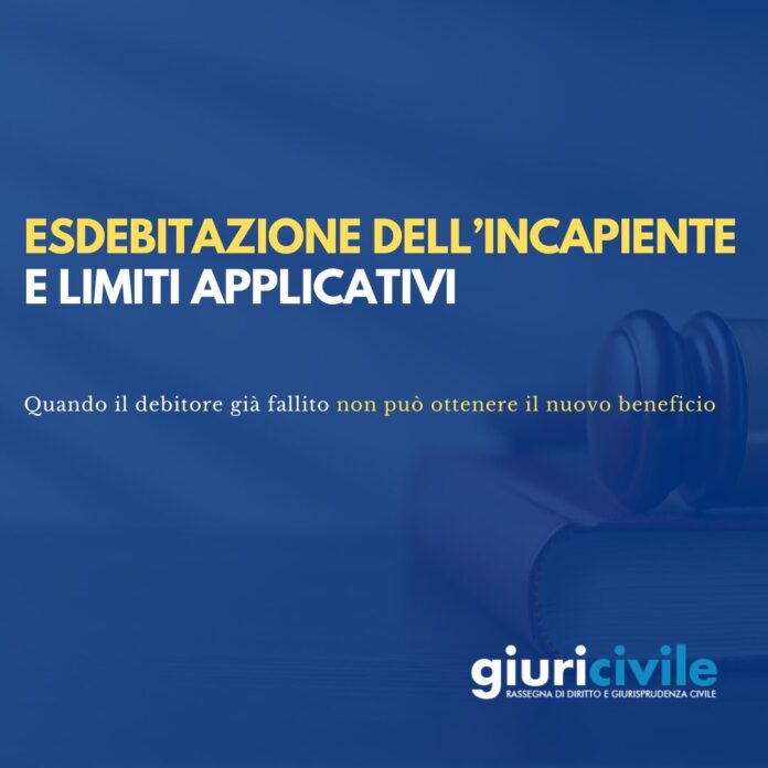 “Il debitore incapiente già dichiarato fallito e che non abbia fruito, per qualsiasi ragione, del beneficio dell’esdebitazione di cui all’art. 142 l.fall. non può successivamente invocare il diverso beneficio dell’esdebitazione dell’incapiente, disciplinato dall’art. 283 CCII, qualora l’esposizione debitoria si riferisca a quella già afferente alla procedura originata dalla dichiarazione di fallimento”.