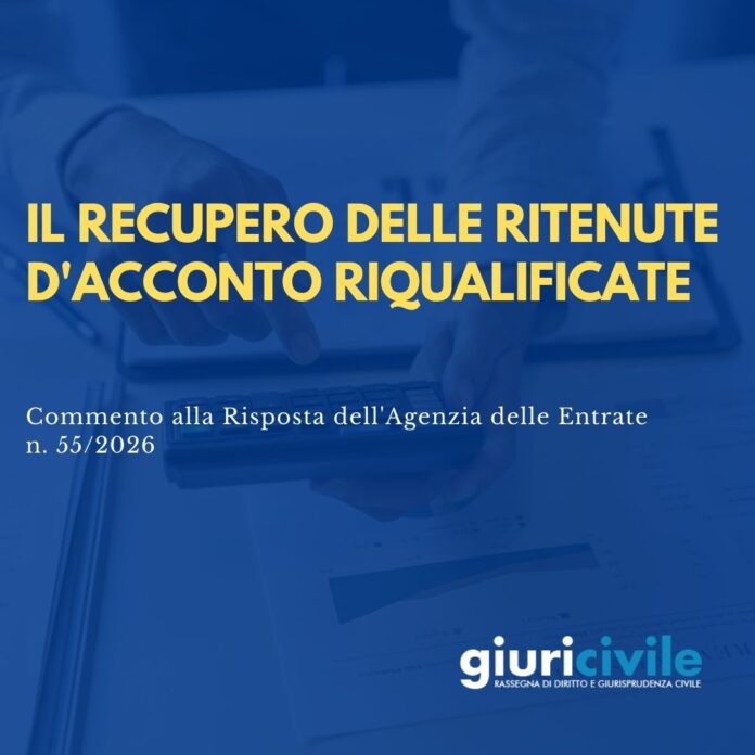 Il rapporto tra sostituto d’imposta e sostituito è spesso oggetto di contestazioni in sede di verifica fiscale, specialmente quando la natura delle prestazioni rese viene riqualificata dall’Amministrazione Finanziaria. Il caso affrontato dalla Risposta n. 55/2026 dell’Agenzia delle Entrate (puoi leggerla qui) riguarda la complessa gestione delle ritenute d’acconto versate dal sostituto “ora per allora” a seguito di un accertamento, e il conseguente diritto del sostituito di recuperare quanto già versato a titolo di imposta sul medesimo reddito.
