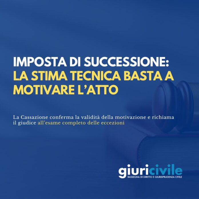 La Cassazione, Sezione Tributaria, con l’ordinanza n. 9146/2026, ha chiarito quando la motivazione dell’avviso di rettifica in materia di imposta di successione può ritenersi sufficiente, precisando il ruolo della stima tecnica allegata e ribadendo l’obbligo del giudice di appello di esaminare tutte le eccezioni ritualmente riproposte.