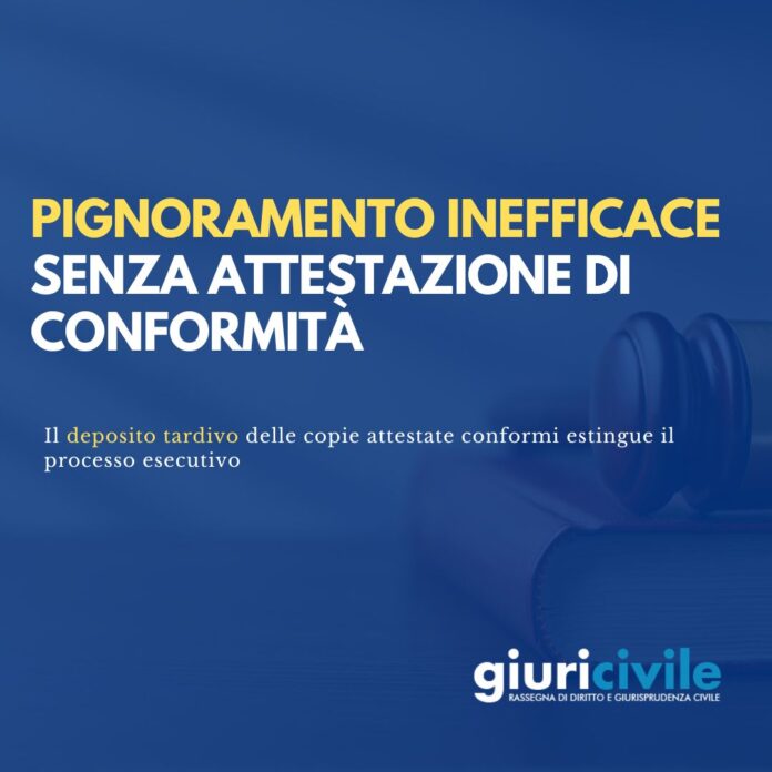 La lettura della Suprema Corte risulta strettamente aderente al dato normativo, confermando che il mancato o tardivo deposito delle copie attestate conformi degli atti, entro il termine perentorio previsto dall’art. 557 c.p.c. (e dall’art. 543 c.p.c.), determina l’inefficacia del pignoramento e la definitiva estinzione del processo esecutivo.