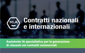 Nel lavoro quotidiano di avvocati, giuristi d’impresa, commercialisti e consulenti, la contrattualistica commerciale richiede sempre un equilibrio delicato tra rapidità, precisione tecnica e capacità di adattare il testo al caso concreto. È in questo spazio operativo che si colloca MIA Contratti nazionali e internazionali, un assistente di intelligenza artificiale pensato per accompagnare il professionista nella redazione, analisi e revisione di contratti commerciali.