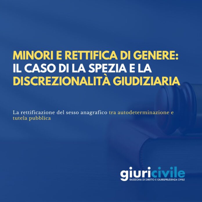 La rettificazione del sesso anagrafico in età minorile rappresenta oggi uno dei punti più delicati di frizione tra autodeterminazione, tutela pubblica e limiti della decisione giudiziaria. Il caso deciso dal Tribunale di La Spezia, con la sentenza del 10 dicembre 2025, impone di interrogarsi non tanto sull’esito, quanto sul fondamento e sulla misura della discrezionalità che il giudice può esercitare quando manca una disciplina legislativa specifica. In questo quadro, il principio del superiore interesse del minore resta centrale, ma non può trasformarsi in una clausola “onnivalente” capace di supplire alla legge nella definizione anticipata dello status personale.