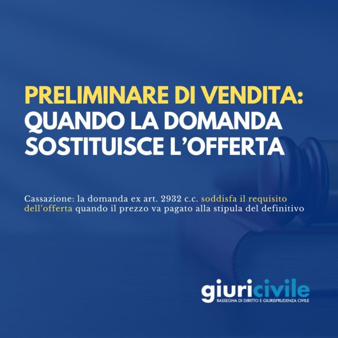 Preliminare di vendita: quando la domanda di esecuzione in forma specifica sostituisce l’offerta