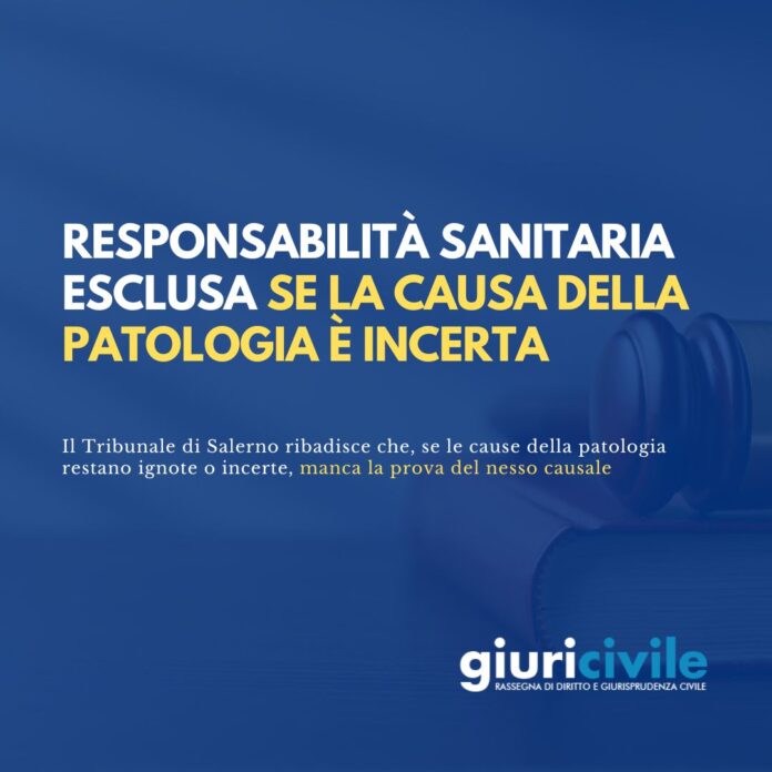 Il Tribunale di Salerno ha evidenziato come, in materia di responsabilità medica, gravi sul paziente danneggiato l’onere di dimostrare quali siano le cause del fatto costitutivo della sua pretesa di risarcimento del danno che deriva dalla condotta inadempiente del danneggiante.