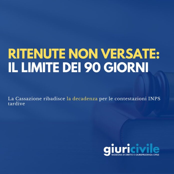 Ritenute previdenziali non versate: perché il termine di 90 giorni è decisivo