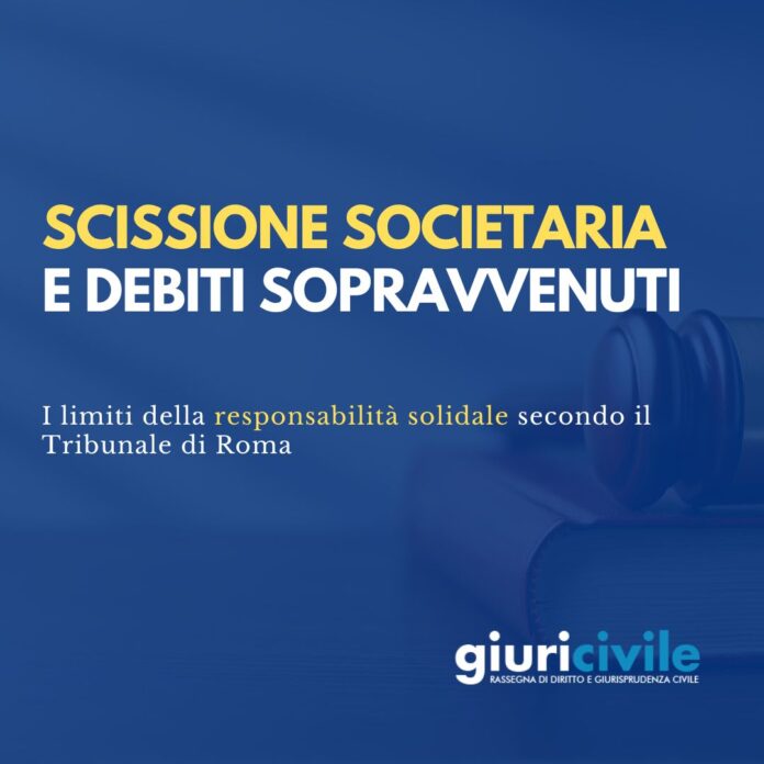 Il Tribunale di Roma, con una recente sentenza (n. 1604/2026), affronta il tema della sorte delle passività sopravvenute e dei debiti non espressamente menzionati nel progetto di scissione societaria. La controversia origina dall’esercizio di un’azione di regresso intrapresa da una società scissa nei confronti della beneficiaria, nata da una scissione parziale non proporzionale, per il recupero pro quota di somme corrisposte a titolo di oneri di sanatoria edilizia. Per approfondimenti in materia, consigliamo il volume “Operazioni straordinarie”, acquistabile cliccando su Shop Maggioli o su Amazon.