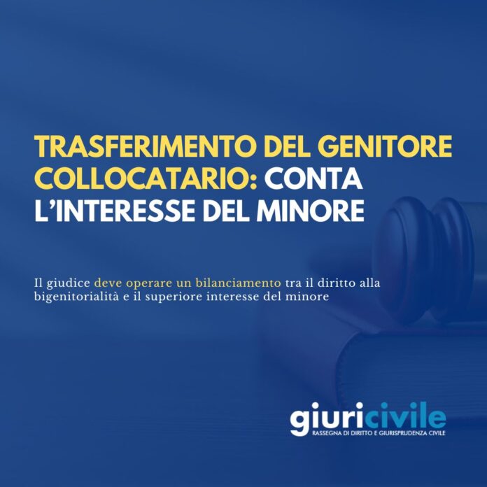 La Corte ha ribadito che, nei casi di trasferimento del genitore collocatario, il giudice di merito è chiamato a svolgere una valutazione complessa, che tenga conto di una pluralità di interessi tra loro potenzialmente confliggenti.