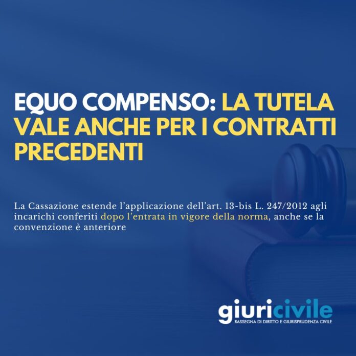 La Corte di Cassazione, con la sentenza n. 29039 del 3 novembre 2025 (clicca qui per consultare il testo integrale della decisione), ha precisato che la disciplina dell’equo compenso degli avvocati, introdotta dall’art. 13-bis della legge n. 247/2012, trova applicazione anche nei contratti di patrocinio stipulati dopo l’entrata in vigore della norma, ancorché la convenzione quadro sia stata sottoscritta in data anteriore.
